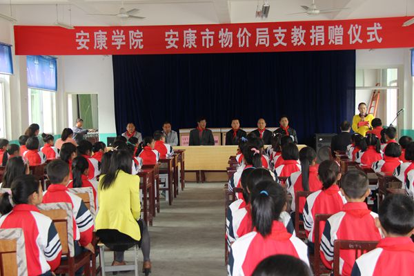民主小学校长徐流泉首先代表学校全体师生致辞,向安康学院暨安康市物价局表示衷心感谢。许宝林代表校支教工作组讲话。