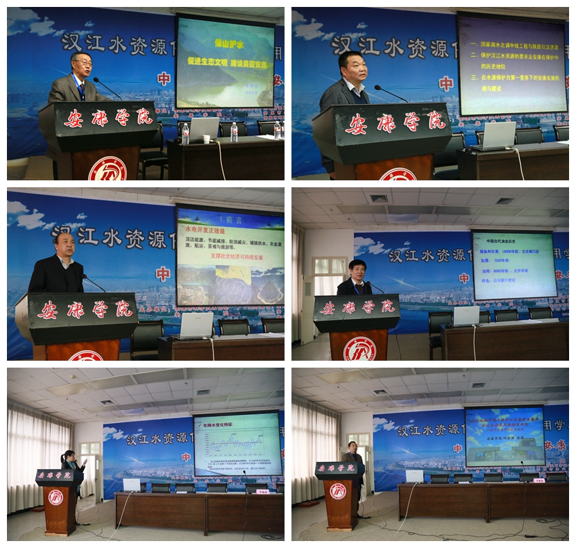 本次研讨会分为专家报告和学术研讨两个阶段。在上午的主题报告会上,著名水利专家、中国工程院院士、长安大学教授李佩成,中国科学院水生生物研究所淡水生态学研究中心研究员、国家淡水渔业工程技术研究中心主任李钟杰,西安理工大学教授、博士研究生导师黄强,陕西省气候中心气候变化与预测科科长、气象学硕士、工程师魏娜,陕西省水利厅引汉济渭办公室主任蒋建军,安康学院政治与历史系主任、教授何家理等六位专家,围绕“中国汉江、美丽安康”主题,就南水北调中线工程背景下汉江水资源保护与开发利用问题做了精彩的主题演讲。