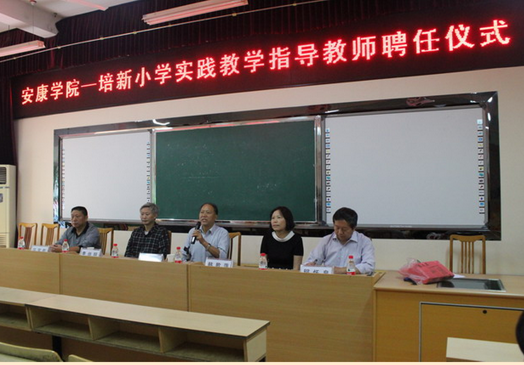 当天下午,办学顾问李国庆教授、教育科学系着副主任李尚明教授、韩歌萍副教授、培新小学程怀泉校长、汪宝群书记等出席培新小学实践教学导师聘任仪式。李国庆教授在会上致辞,希望师范生应深入教学第一线,认真从实践指导老师那里吸取经验,掌握教育方法,更新教育理念,迅速成长成为优秀小学教师,同时指出,安康学院正在申报国家卓越小学教师培养计划项目,致力于培养高素质小学教师,希望同学们对未来这个光荣的职业满怀自豪。