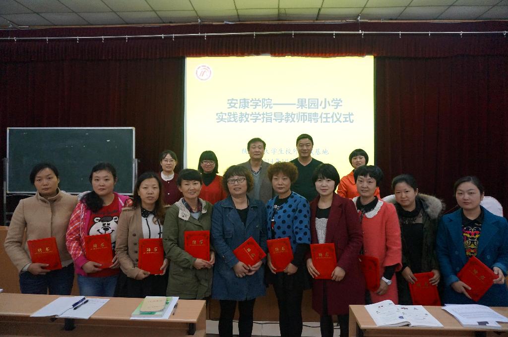 为了贯彻落实习近平总书记教师节重要讲话精神,推动教师教育综合改革,培养让党和人民满意的好教师, 今年10月,教育科学系小学教育专业根据自身专业特点分别在安康市汉滨区江南小学、果园小学、培新小学举行了实践教学指导教师聘任仪式,按照语文、数学、英语三个学科专业方向,从安康市汉滨区江南小学、果园小学、培新小学聘请了35名优秀教师担任2014届155名小学教育专业学生校外实践教学指导教师。教师教育校外实践教学导师制度的建立,对加强实践教学环节,提高学生教育教学能力具有重要的意义,通过校际合作、协同培养实现了第一课堂和第二课堂的有机结合,成为颇具特色的教师教育专业人才培养体系的重要保障。