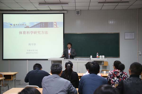 为进一步推进小学体育国培教学工作,促进教师与国内著名学者的学术交流与合作, 11月9日上午,北京首都体育学院硕士生导师阎守扶教授应邀来我校作题为“体育科学研究方法”的学术报告。全体国培学员及体育系师生参加了报告会。