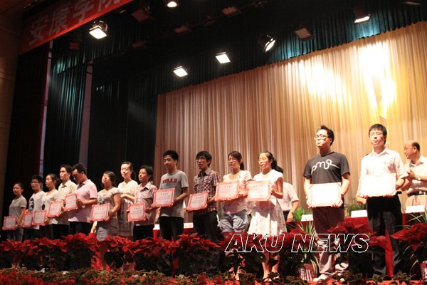 杨行玉副院长宣读了对省级和院级优秀毕业生、优秀学生干部的表彰决定。我院共有131名同学获得了陕西省和学院优秀毕业生、优秀学生干部荣誉称号。在典礼上,为获表彰学生颁发了荣誉证书。
