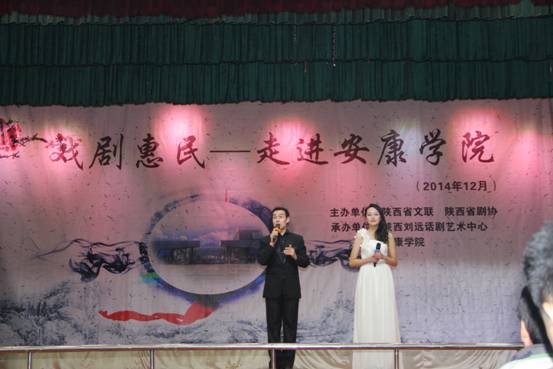 12月22日、23日,由陕西省文联,陕西省剧协主办,陕西刘远话剧艺术中心与我校承办的“戏剧惠民—走进安康学院”活动分别在我校江南校区大礼堂和江北校区1401演艺厅隆重举行。本次演出团队由梅花奖、文华奖获得者 、国家一级演员、省文联副主席、省剧协副主席刘远,全国诗歌朗诵协会理事 、话剧表演艺术家蒋瑞征,中央电视台特邀演员、喜剧表演艺术家董祥林等三位德高望重的老艺术家带领19位中青年艺术家组成。陕西省作协副主席张虹,陕西省剧协副秘书长李生茂,我校党委副书记胡鸿晓教授及相关职能部门负责同志出席并观看了演出。