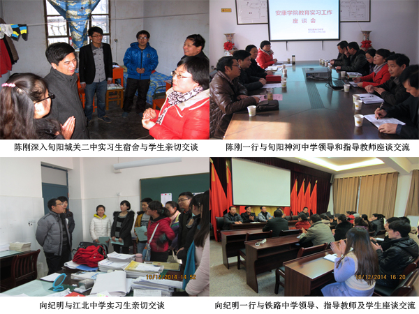 为准确掌握我校师范生教育实习进展状况,解决实习工作中的实际问题,推进实践教学改革的不断深化,12月8日-19日,副院长陈刚、向纪明分别率领相关院系书记、教务处有关人员赴我市7县1区对2014年教育实习进行了巡视检查。