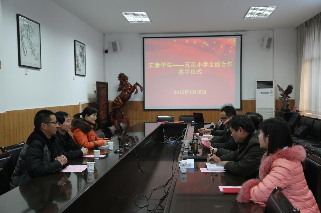 五星小学校长李丽从办学规模、管理理念、办学宗旨、教学研究等方面介绍了五星小学的基本情况。李校长强调,五星小学从农村学区划归新城办学区后,既迎来了发展机遇,又面临很多挑战,迫切需要借助安康学院的优质教育资源和良好的办学声誉,推进五星小学师资队伍综合素质和教育教学整体水平的提高。