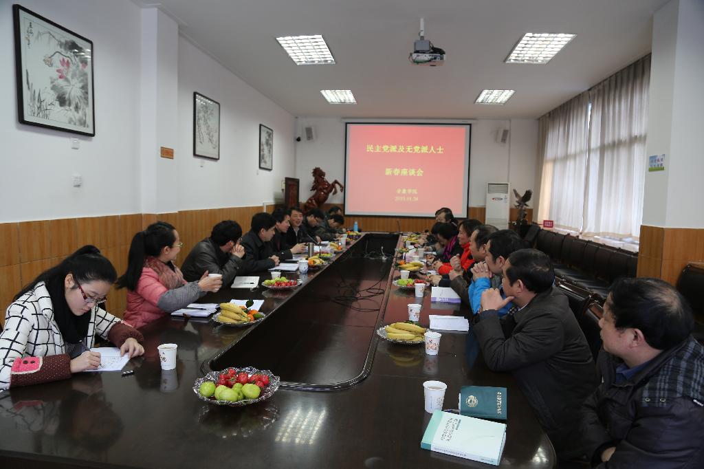 1月20日下午,学校各民主党派、无党派人士代表座谈会在江南校区第一会议室召开。党委书记王国良教授、校长陈刚教授、党委副书记胡鸿晓教授与我校民盟、民进、农工、九三学社等民主党派及无党派人士进行了深入座谈交流。校党委宣传(统战)部相关工作人员参加了会议。会议由胡鸿晓主持。