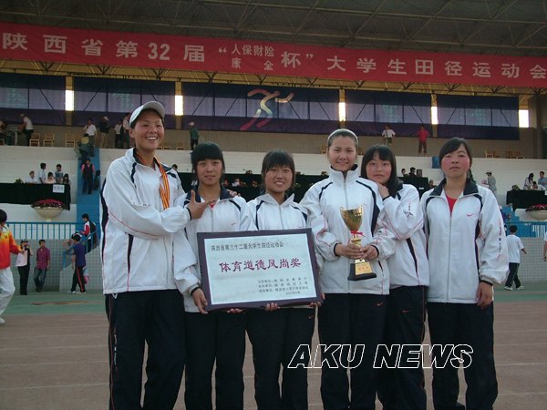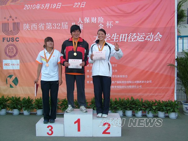 陕西省第32届大学生田径运动会于2010年5月19-22日在陕西师范大学长安校区举行,共有67所高校的70多支队伍参加了本届运动会。经过四天激烈的拼搏,我校运动员夺得体育院系专业组:女子七项全能、男子跳高银牌,多个项目取得前六名,尤其是女子团体总分获得第五名,这是我校体育系建系以来首次在各类体育比赛中跻身于我省15所体育院系前六强,创造了安康学院田径运动史上新的辉煌。我院代表队在大会期间顽强的拼搏精神和良好的赛风赛纪受到好评,被大会授予体育道德风尚奖。