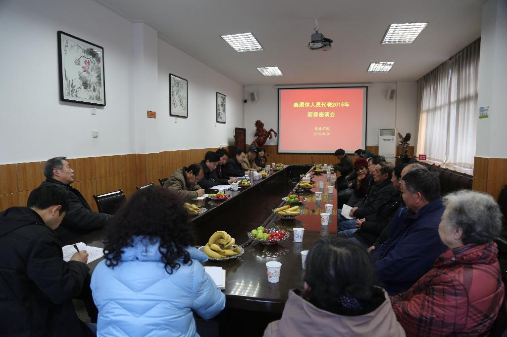 1月20日下午4点,我校离退休教职工代表新春座谈会在学校第一会议室召开。新任校党委书记王国良教授、新任校长陈刚教授出席会议并讲话。离退休教职工代表与部分职能部门负责人参加会议。学校党委副书记、纪委书记闵小平主持座谈会。