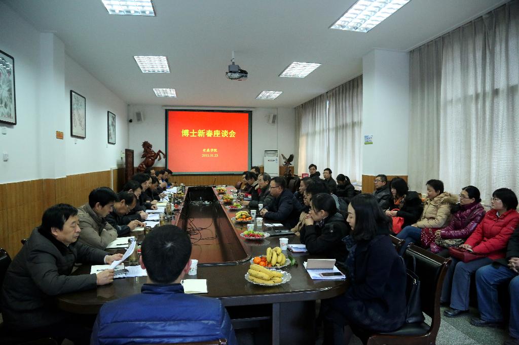 王国良在总结讲话中代表学校党委向各位博士心系学校发展,潜心教学科研工作表示感谢。要求全校上下牢固树立人才强校意识,努力营造让人才想干事、能干事、能干成事的良好环境与氛围。学校党政办、组织部、人事处、教务处和科研处,都要成为教师之家,为教师特别是高层次人才发挥才能提供良好的服务和可靠的保障。教授和博士数量偏少,作用还没有得到充分发挥,是我校师资队伍建设的短板,必须下大力气抓紧补上。要继续加大经费投入,加大工作力度,加快师资队伍建设特别是高层次人才队伍步伐,为我校的持续快速健康发展提供人才保障。王书记最后对博士和在读博士提出三点殷切希望:一是积极融入,安心工作,做好主人翁;二是默默积淀,奋发有为,形成团队;三是加强磨练,快速成长,多出成果。请各位博士把学校党委和行政对教师的新春祝福带回去,祝大家新春愉快,身体健康,家庭幸福!