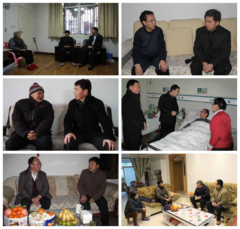 1月27日至29日,在新春佳节来临之际,我校校领导分为六个慰问组,在学校办公室、组织部、离退休处、校工会、宣传部等相关职能部门负责人的陪同下,对26名离退休老领导、老专家、老党员、民主人士和部分教职工进行走访慰问,向他们致以诚挚的问候和新春的祝福。