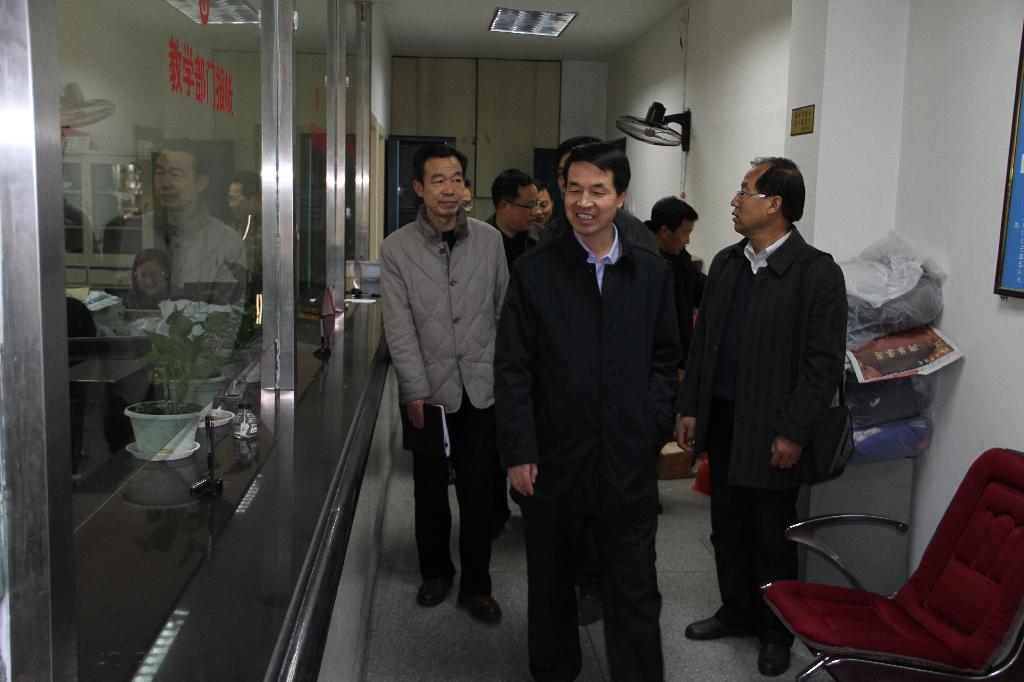 3月7日下午,学校党委书记王国良、校长陈刚带领班子全体成员及相关部门负责人分为两组,前往我校南、北校区深入各院系、部门检查了开学准备工作。