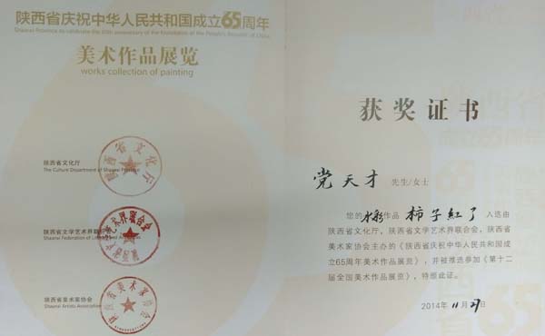 本次被陕西省推选参加十二届全国美术作品展共计100幅作品,安康市共有3幅作品入选,全部由我校艺术系囊括,即党天才的水彩画《柿子红了》、章长青的国画《回家》、卜嘉艺的版画《革命文物》。建国以来,安康市被推选参加同类的全国美术作品展仅有2幅作品,本次同时入选3幅作品,既是我校建校以来的首次,也是安康市建国以来的首次。