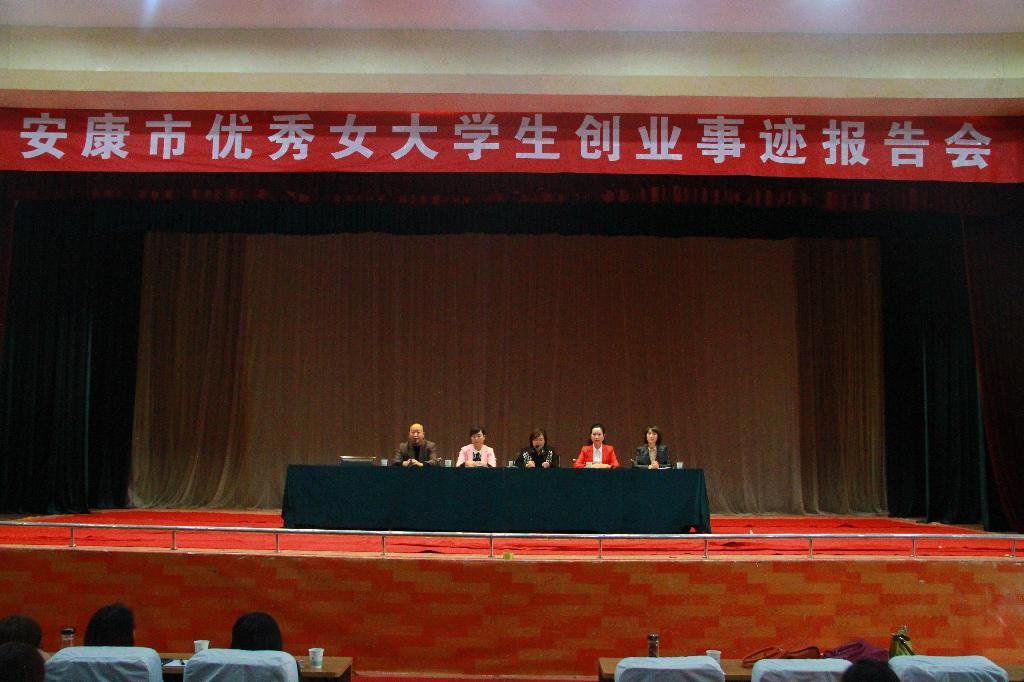 4月2日,安康学院、安康市妇女联合会、安康市人力资源和社会保障局联合举办的“安康市优秀女大学生创业事迹报告会”在我校江南校区大礼堂成功举行。安康市妇联副主席唐锦,市妇联科技开发培训科科长周晓丽,安康市人力资源和社会保障局毕业生工作部部长秦丽,安康市女企业家协会会长黄庆雪等领导,我校学生就业处、各院系负责就业工作辅导员以及700余名学生参加了报告会。