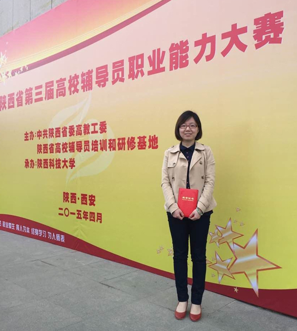 2015年4月7日—9日,陕西省第三届高校辅导员职业能力大赛在陕西科技大学举行。我校中文系辅导员沈菲获得二等奖,经管系辅导员纪宏耀获得优胜奖。