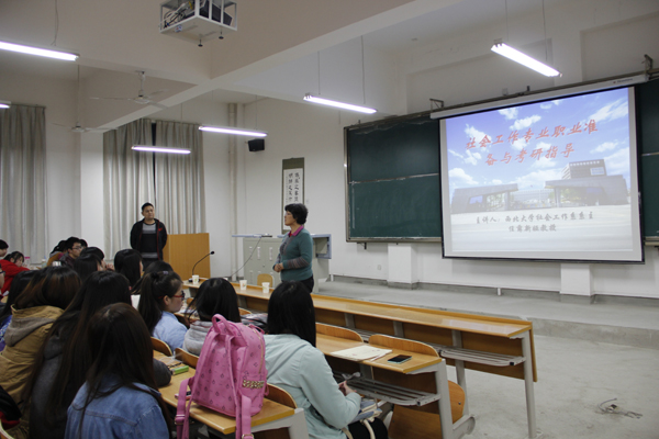 应我校邀请,4月10日晚,西北大学社会工作系原主任、我校社会工作专业兼职教授薛新娅在江北校区1201教室举行题为“社会工作专业职业准备与考研指导”的学术讲座。我校社会工作专业相关教师和学生参加此次讲座。