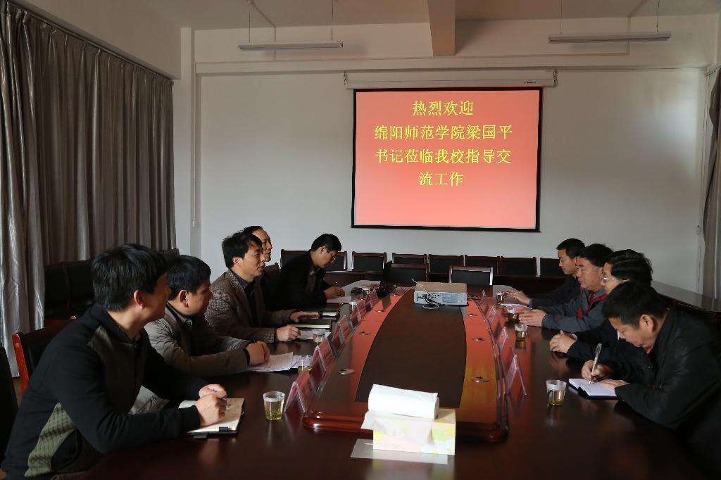 胡鸿晓对梁国平一行的到来表示热烈的欢迎,简要介绍了我校的发展历史、办学情况和办学特色,希望绵阳师范学院此行介绍好的办学经验、办学思路及想法,推动双方教育事业共同发展。