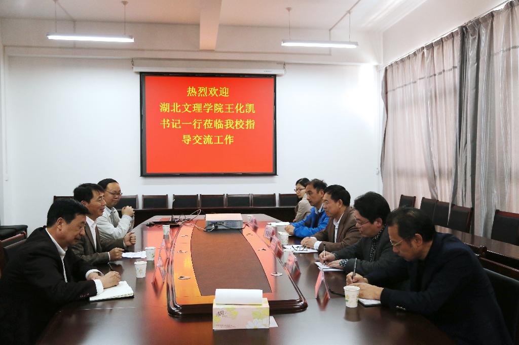 胡鸿晓对客人的到来表示欢迎,他简要介绍了我校的办学历史及人才培养、服务地方等方面取得的主要成绩。胡鸿晓表示,我校与湖北文理学院同处汉水流域,有着相近的地理环境和办学历史,同属地方院校,在学科专业建设、学术文化研究、服务地方经济社会等方面有着广阔的合作空间,希望湖北文理学院与我校加强交流合作,取长补短资源共享,推动双方学校事业共同发展。