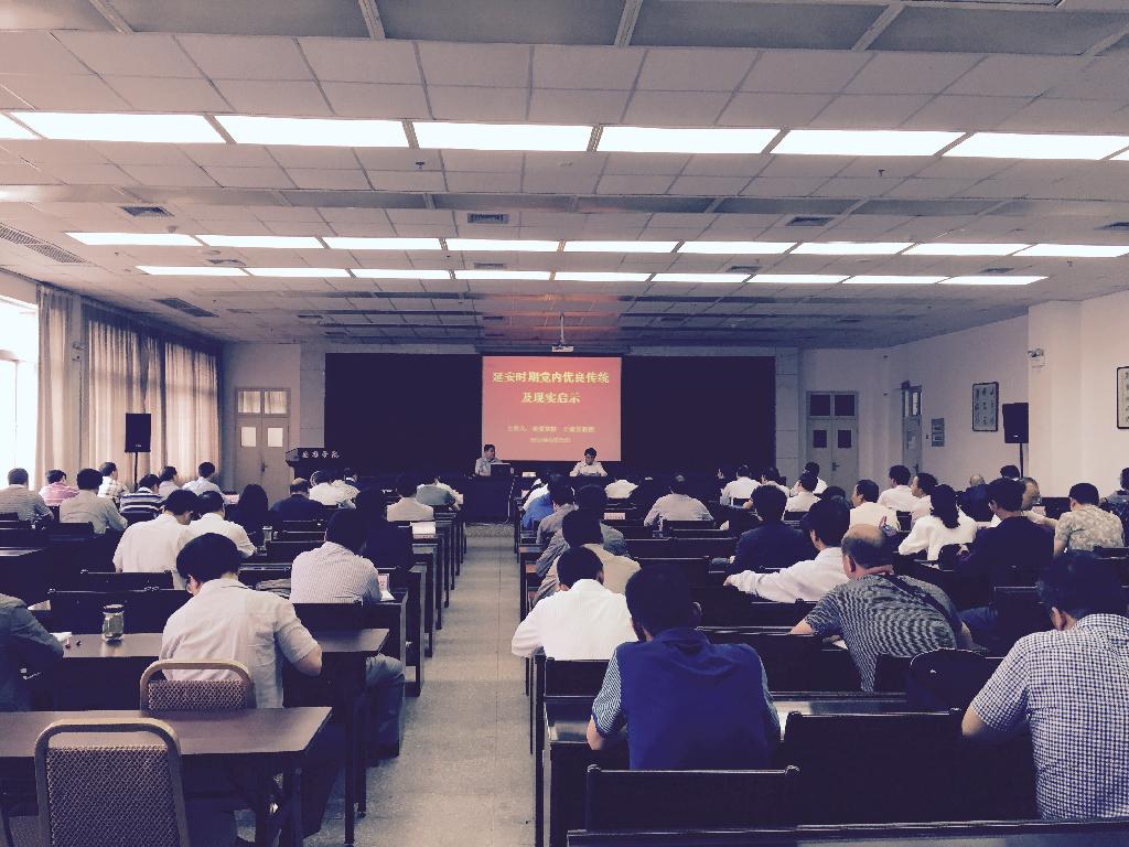 会上,王诚安教授结合自己的理论研究,从延安时期党内优良传统的培育形成、坚持民主集中制、维护党的团结和纪律、正确开展批评与自我批评、领导者的表率示范、弘扬延安时期党内优良传统的思考等六个方面,详细阐述了我党延安时期党内优良传统及其现实启示。王教授的报告史料详实、研究精到、启示深刻,为所有参会人员上了一堂生动的作风教育课。