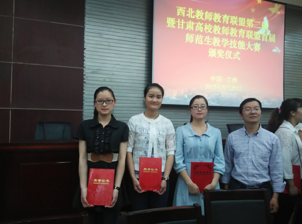 西北教师教育联盟第二届师范生教学技能大赛于2015年5月27—29日在兰州市西北师范大学举行,来自陕西、青海、宁夏、新疆、甘肃等省(自治区)19所高校的52名同学参加了比赛。本次大赛的参赛专业限定为思想政治教育、地理科学、生物科学。我校派出了由郑治国老师带队,何梦焕、石唯康、王绞绞三名同学组成的代表队参加了本次比赛。经过教案设计、课件制作、模拟授课、即席演讲四个环节的激烈角逐,最终我校王绞绞获得生物科学组三等奖,何梦焕、石唯康二位同学获得地理科学组和思想政治教育组优秀奖,一等奖分别为西北师范大学和陕西学前师范学院获得。