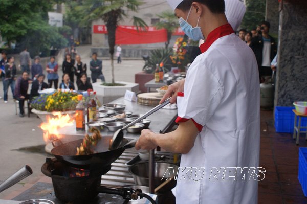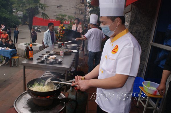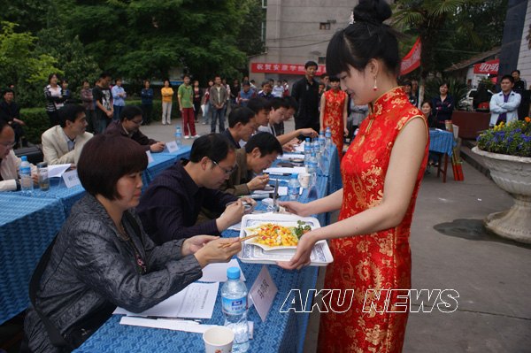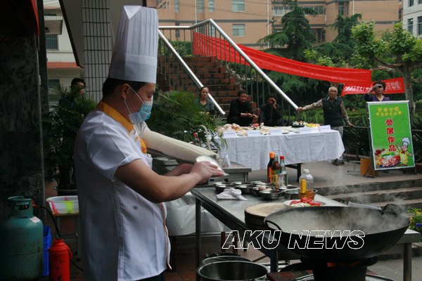 为在全院师生中倡导“健康、营养、环保、节约”的饮食文化理念,弘扬中华民族传统饮食文化,提高厨艺水平,更好地满足师生饮食需要, 5月14日下午,由后勤集团与学生伙食管理委员联合举办的“安康学院首届厨艺比赛”在东校区第一食堂餐厅前成功举办。学院副院长杨行玉以及学院办公室、宣传部、学工部、团委、工会、后勤集团等相关部门负责人出席了开幕式。后勤集团总经理刘学习致开幕词,副总经理郭家平宣读了比赛规则。