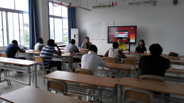 会上,王开忠为留学生和教师作安全教育的宣讲。首先为留学生们介绍了我校保卫处的职能,继而结合发生在我省的有关留学生安全的实际案例,告诫同学们在校学习期间不仅要遵守我国的相关法律法规,还要遵守我校的校纪校规及国际处的相关规章制度;他从外国人入境出境以及居留、交通安全法规、日常防盗防骗等与留学生日常生活息息相关的方面进行讲解,提醒大家增强自我保护和防范意识,以免造成不必要的损失及陷入不安全的境地。同时,他也希望与在座的留学生们成为朋友,加强联系,并非常乐意为留学生提供帮助与服务。接着,李泊霖老师对开学以来我校留学生中出现的安全隐患行为进行了总结,明确提出“谨慎使用通讯工具随意添加陌生人”、“不准校内饮酒”、“严禁晚归”等三项纪律要求,再次强调了有关各项管理规定,并指明违反规定应受到的相应处罚措施。随后,老师们与学生开展了讨论活动,认真听取了学生们的意见和建议,表示一定尽最大的努力,协助解决学生在生活上遇到的种种困难。最后,留学生们就在校学习和生活中遇到的问题与老师们进行了交流。留学生们表态:感谢学校为喜欢中国,热爱学习的留学生们提供的优质服务,并承诺遵守学校规定,确保校园的安全和稳定,有义务保护学校及自身的名誉,谨守学生本分。
