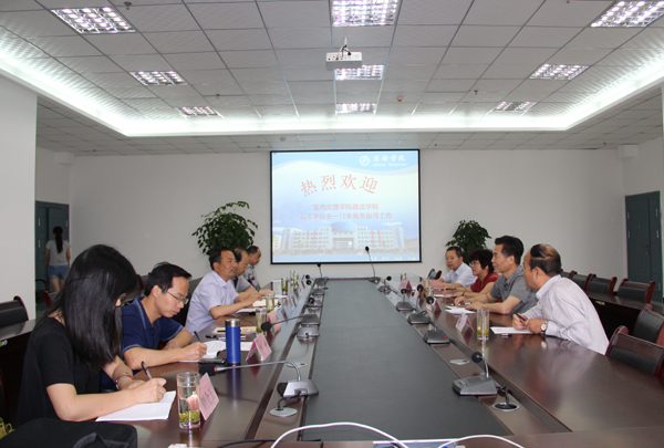 2015年6月11-12日,宝鸡文理学院政法学院院长石玉平教授,政法学院原院长赵克平教授,政法学院党总支书记石桂荣,教研室主任杨福荣等一行4人来我校政治与历史系就师范生教学技能培养情况进行考察交流。