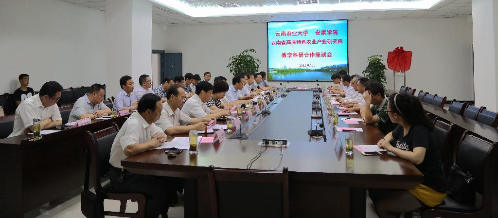 7月3日上午,云南农业大学校长盛军一行来我校交流和落实教学科研合作工作,并在江北校区逸夫科技楼召开了教学科研合作座谈会。座谈会由安康市副市长鲁琦主持,我校党委书记王国良、副书记、纪委书记闵小平、安康市林业局、科技局、农业局、发改委等市直单位领导以及我校相关院系、职能部门负责人参加了座谈会。座谈会后,我校党委书记王国良与云南农业大学校长盛军、云南省高原特色农业产业研究院副院长张郭宏签署了合作协议。王国良和盛军共同为“安康富硒茶产业研究院”揭牌。