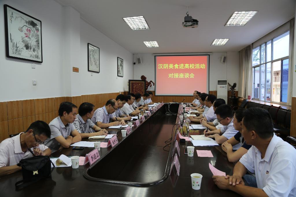 7月22日下午,汉阴县人民政府县长周永鑫一行来我校召开“汉阴美食进高校活动”对接座谈会。汉阴县委常委、副县长王琳,汉阴县人大常委会副主任谢继来,汉阴县政府办公室、县委宣传部、县粮食局、县文广局等部门负责人参加了座谈会。座谈会由安康学院校长陈刚主持。