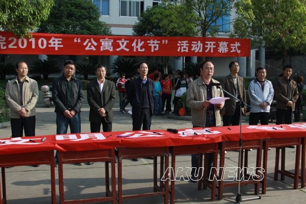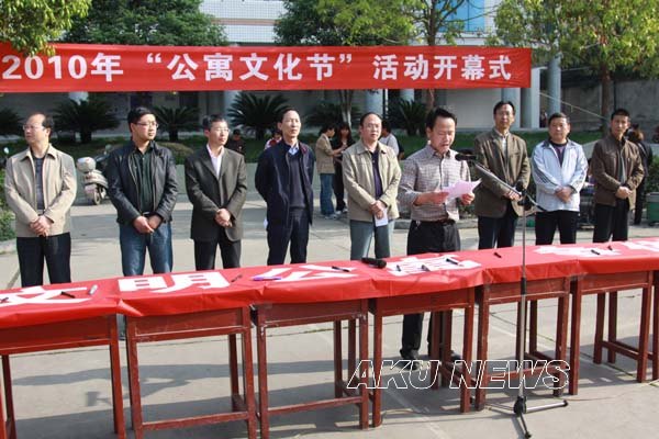 4月19日下午,我院2010年“公寓文化节”活动启动仪式在东校区北区篮球场隆重举行,学院学生公寓管理委员会委员及各院系学生代表300余人参加了仪式。仪式由学生工作部部长兼学生公寓管理委员会副主任郑树青主持。