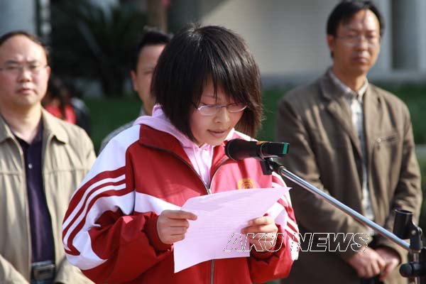 外语系的学生代表作了发言,倡导全院学生要积极健康,文明节约的生活,并表示带头发挥“自我管理,自我服务,自我教育”的作用,以极大的热情,饱满的精神状态投入到 “崇尚文明、根除陋习、争当先进”的公寓文化建设中去。