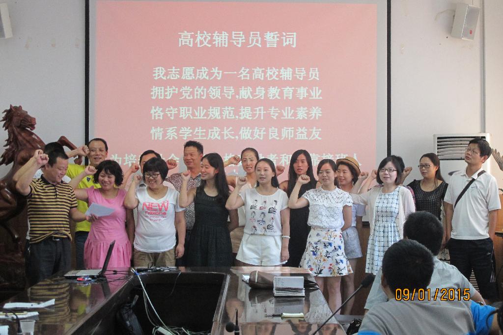 学工部部长郑树青对辅导员进行了业务辅导,郑武生领学了有关理论文章。培训会上,表彰奖励了2014—2015学年度优秀辅导员,开展了辅导员宣誓活动。