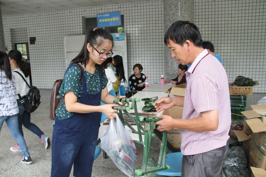 15级数统系的李鹏辉微胖的脸庞挂着细细的汗珠,他说刚到学校才半个小时左右,报名手续就已基本办完,马上去领军训服了。印象最深的就是老师和学长、学姐们接新生时所表现出的热情、负责任的态度,以及超强的耐心。他还告诉我们,那些接新生的同学一路上都在向他介绍大学生活的注意事项,帮他拿行李,提醒他办理入学手续的流程……这些都让他觉得很暖心。
