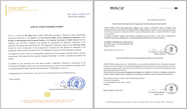 日前,国家留学基金管理委员会《2015-2016年度与匈牙利政府互换奖学金项目录取人员名单》公布,我校推选的2011级英语专业学生陶适意、王雨薇通过国家留学基金委员会和匈牙利政府及相关高校的严格评审,分别被匈牙利国立公共服务大学、布达佩斯商学院录取,即将赴匈攻读硕士研究生学位。此次是我校学生第一次获得国家公派出国留学资格,展现了我校学子良好的专业水平和积极进取的精神风貌。