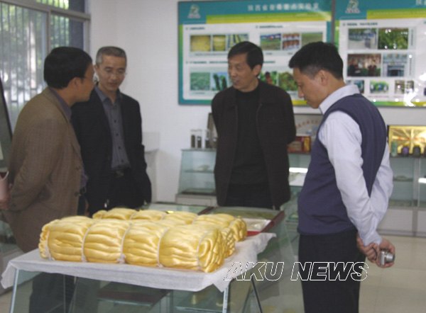 在我院陕西省蚕桑重点实验室和恒口蚕桑科研基地,黄先智教授详细考察了实验室和基地的项目研究工作。黄先智博士认为:开展野桑蚕资源利用研究和彩色茧蚕品种选育研究是很有意义的,符合蚕桑资源深度开发研究方向,今后应与国内著名高校和科研机构深度合作,共同开展蚕桑野生资源利用研究。恒口基地桑树品种资源比对试验很有特色,桑园管理技术水平很高,尤其是丰产桑品种示范园很吸引人,起到了优秀品种、优良示范、优先推广的作用。对于蚕桑重点实验室研发的桑枝食用菌生产技术,黄先智教授指出:单纯以蚕为核心的蚕业生产技术体系,必将会改变为以桑为核心,这是蚕业技术体系的重大改变。桑不仅只能养蚕,而且还有更为广泛的产业应用前景。石泉县桑枝食用菌生产价值已经与蚕茧生产价值相当,桑园套种、桑园养禽等新型生产方式,不仅能够有效地促进农民增收,同时也稳定了蚕桑生产的基础。