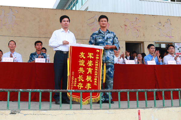 王旭铭代表军训团祝贺本次军训取得圆满成功,并高度赞扬了我校2015级学生在军训中的优异表现。