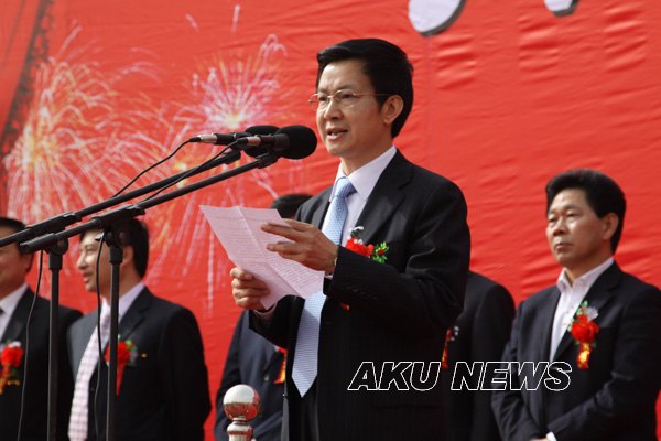 刘建明下达开工令,宣布安康学院新校区建设正式开工!随后,各位领导为我院新校区奠基培土。一时间鼓乐高奏、鞭炮齐鸣、礼花怒放,长长的标语彩带凌空飘舞,随风摇曳出浓浓的喜庆气氛,数百只气球带着安康学院人的希望迎着朝阳飞向高空。笑容洋溢在每个人的脸上,喜悦荡漾在每个人的心头。