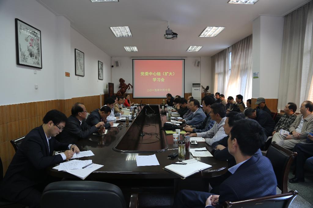 10月10日下午,学校党委在江南校区第一会议室召开了中心组(扩大)学习会议。学校领导班子成员、党委委员、党政职能部门负责人、各党总支书记、各直属党支部书记、思想政治理论教研部负责人等参加了学习会。会议由党委书记王国良主持。