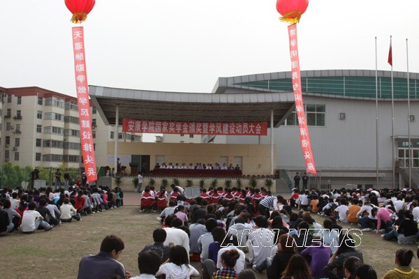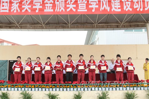 4月29日下午,我院“国家奖学金颁奖暨学风建设动员大会”在学院南区操场举行。 在校的学院领导杨涛、王兴林、胡鸿晓、杨行玉、陈刚出席会议,各院系党总支书记、辅导员,有关部门负责同志和各院系学生参加了大会。大会由王兴林院长主持。