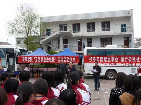 为进一步弘扬“人道、博爱、奉献”精神,全面推进社会无偿献血事业的健康持续发展,3月26日下午4点,在我院东校区前操场举行“安康学院无偿献血进校园启动仪式”。此次活动是由安康市中心血站和我院团委联合举办,积极倡导“无偿献血进校园 爱心奉献显风采”。