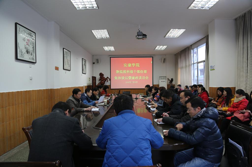 1月29日下午,我校在江南校区第一会议室召开新任科级干部任前集体谈话暨廉政谈话会。党委副书记胡鸿晓,党委副书记、纪委书记闵小平,纪委副书记、监察处处长谢玉玺,副处级组织员车静参加了谈话会。谈话会由党委组织部部长屈险峰主持。