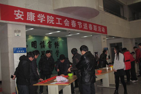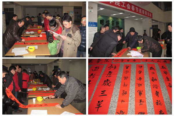 为丰富校园文化生活,营造节日欢庆氛围,弘扬民族传统文化, 2016年1月30日,校工会邀请学校书协老师开展了为教职工义务书写春联活动。学校党委副书记、纪委书记闵小平,副校长杨行玉,工会专职副主席王斌和书协老师杨润波、章长青、张富华、张纪生、梅向东等参加了活动。