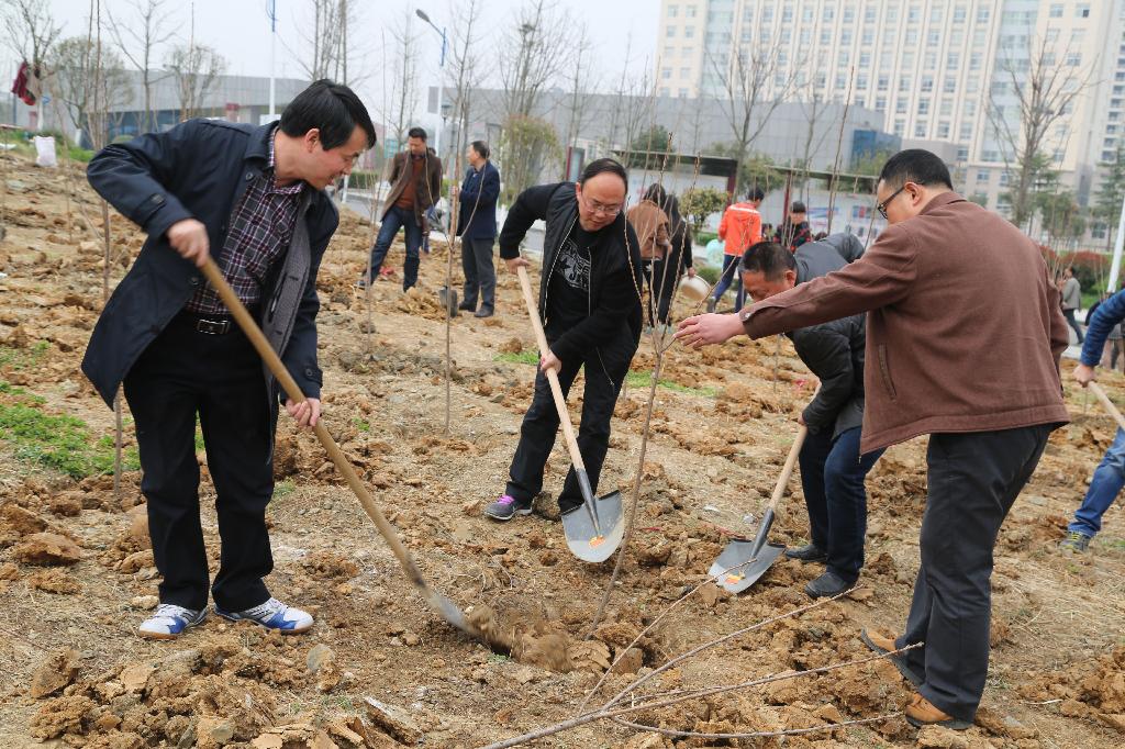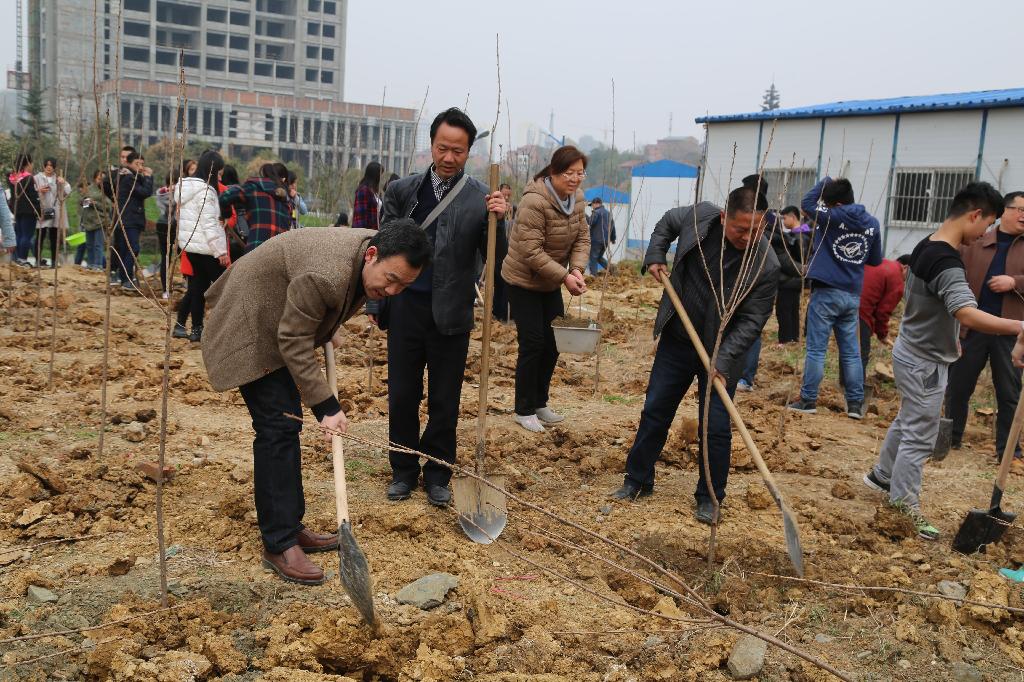 多年来,我校秉持绿色发展理念,努力构建节约型、生态型园林式校园。此次植树活动是我校争创省级园林校园的一次重要举措,2016年将按规划建成樱花园、银杏园、茶园等主题园,进一步丰富植物种类,提升校园绿化层次,为师生营造清新、宁静、美丽、和谐的校园环境。