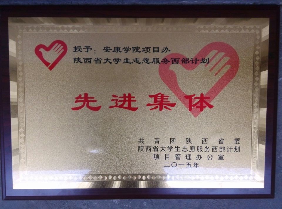 近日,从共青团陕西省委获悉,在2015年度陕西省大学生志愿服务西部计划先进集体评选中,我校荣获“陕西省大学生志愿服务西部计划先进集体”称号。这是我校继2013年度获全国大学生志愿服务西部计划优秀高校项目办后,连续两年被评为陕西省大学生志愿服务西部计划先进集体。