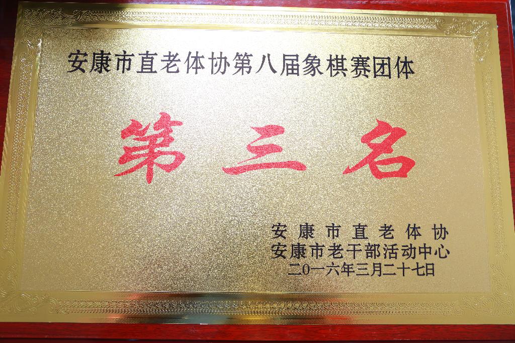 3月26日至27日, 安康市直第八届老年人象棋比赛在市直老干部活动中心举行。经过两天紧张、激烈的角逐,在20多支参赛代表队中,我校由领队兼教练李光谦,队员杨金鉴、李明军、彭天明组成的代表队成绩突出,荣获团体第三名。