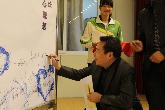 最后,胡鸿晓宣布第九届大学生心理健康教育文化节正式启动,并和全体老师走上主席台,在“体验心成长,放飞心理想”主题宣传板上签名留念。