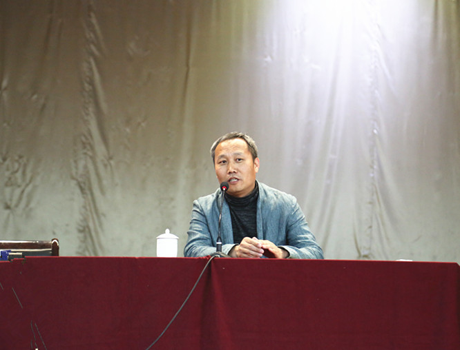 3月30日下午,中国人民大学导师、中国书法协会会员韩启超先生应邀前来我校,在江南校区大礼堂为师生们带来一场以“中国书法艺术鉴赏与创作”为主题的艺术讲座。安康市委宣传部、市纪委监察局等部门相关领导、安康市书画名流及我校艺术学院、文学与传媒学院、教育学院师生800余人聆听了此次讲座。校党委副书记胡鸿晓主持讲座。