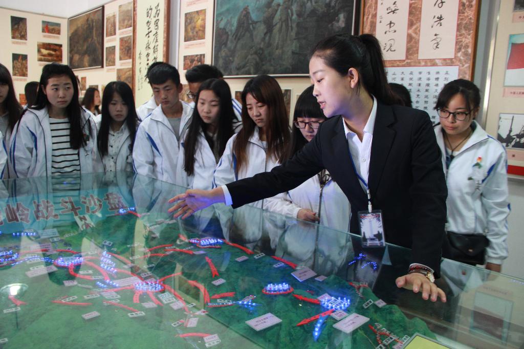 活动中,师生们在雄伟的人民英雄纪念碑前鞠躬、默哀,向烈士敬献花篮,重温入团誓词,深切表达了对烈士的追思、感念、崇敬之情以及传承英烈精神、做好志愿服务工作的决心。来自我校政社学院的3名志愿讲解员带领师生们参观了牛蹄岭战斗纪念馆、三线学兵连纪念馆,瞻仰了符先辉将军纪念碑,并为师生们进行了详细的讲解。
