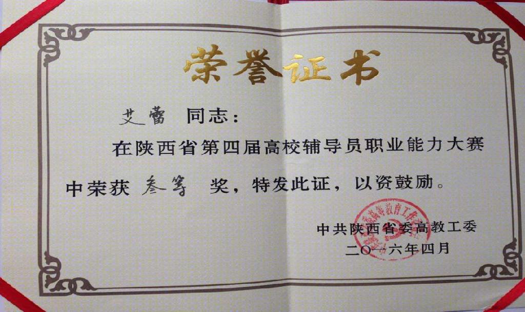 3月31日至4月1日,陕西省第四届高校辅导员职业能力大赛在西北大学举行,来自全省84所高校的127名辅导员参加了比赛。我校选拔的农生院辅导员杨曼和艺术学院辅导员艾蕾代表学校参赛,经过两天紧张激烈的比拼,最终双双荣获三等奖。