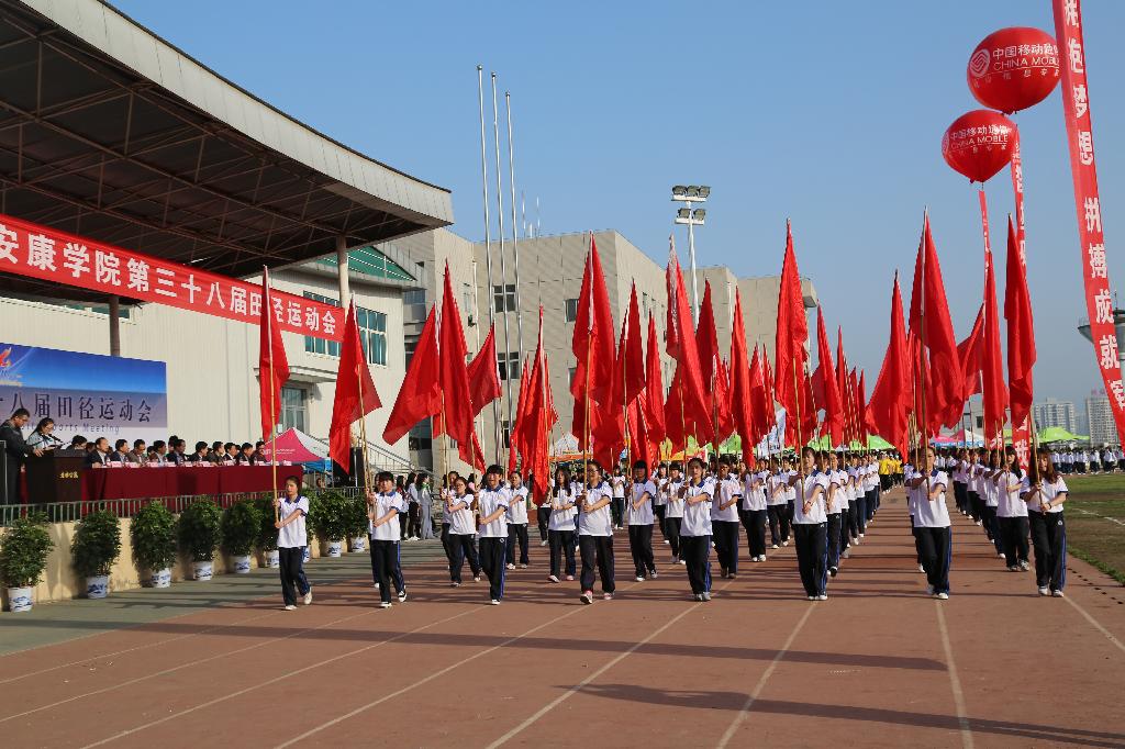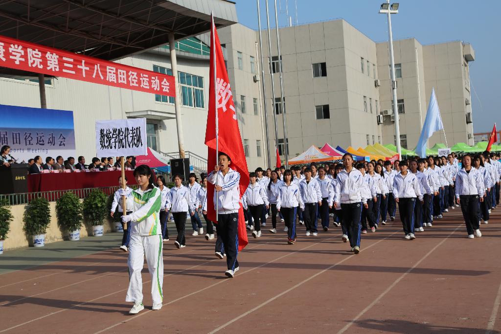 在入场式中,仪仗队和各二级学院的运动健儿们英姿飒爽,朝气蓬勃,焕发着青春的活力。