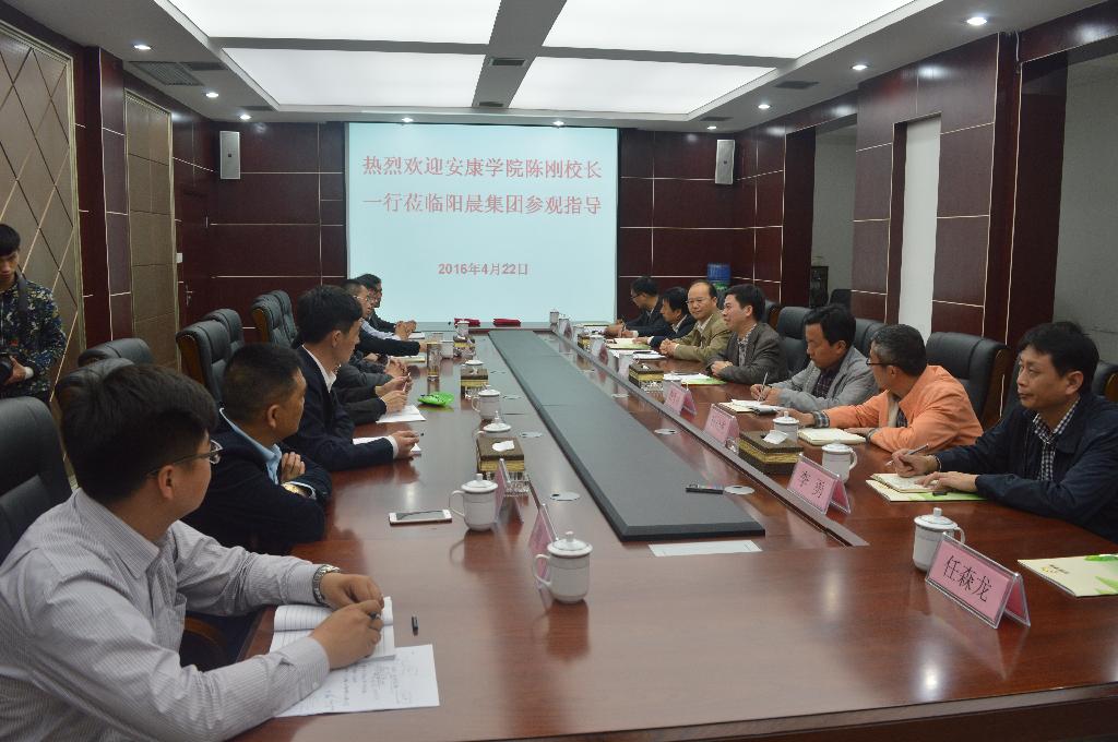 参观结束,双方举行座谈交流。杨运早先生对陈刚一行表示热烈的欢迎,并介绍了阳晨集团公司发展的情况。他说:“阳晨近十多年的快速发展一直有安康学院的陪伴,感谢安康学院对阳晨的支持与帮助。阳晨的快速发展需要人才的支撑,这次产教融合是企业与高校进一步全方位合作的开始,阳晨很期待”。